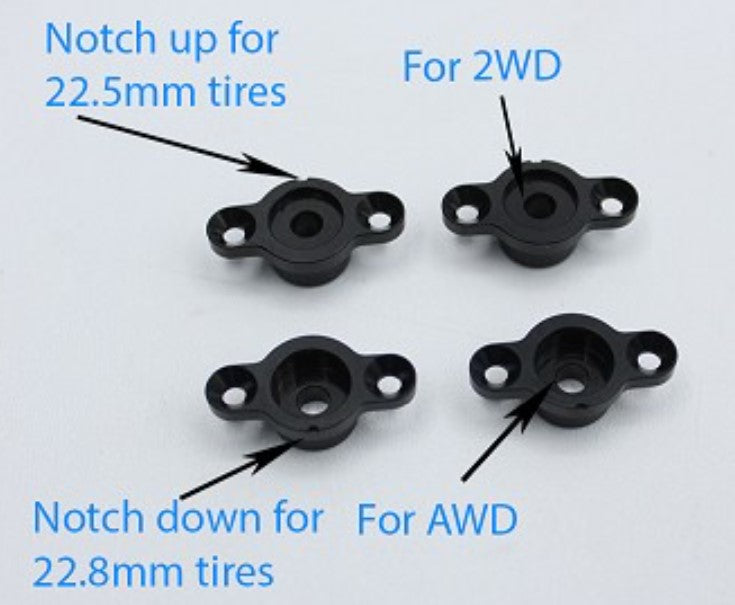 The Set up station is designed to simulate either 22.8 or 22.5 mm tire diameters for maximum accuracy of settings. It is also optimized to be easy to use with either 2WD of AWD specific eccentrics and includes precision, custom made bearings to minimize slop in the assembly for more accurate readings.